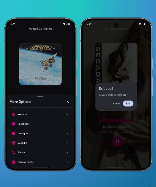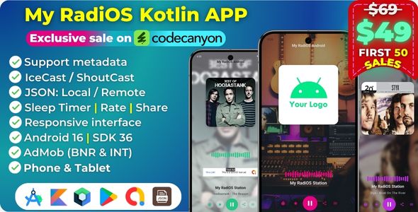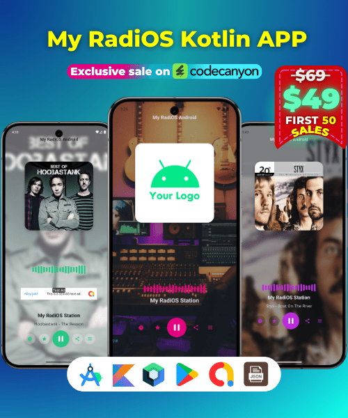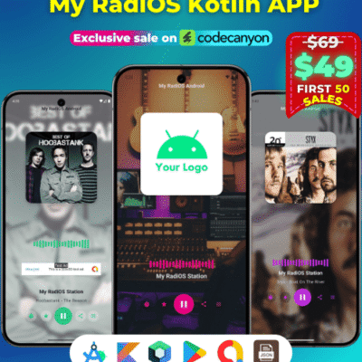 My RadiOS Kotlin (Android) is a modern streaming radio app for Android that delivers high-quality audio in formats such as MP3 and AAC, using Android Media3 (ExoPlayer) for stable and efficient playback.