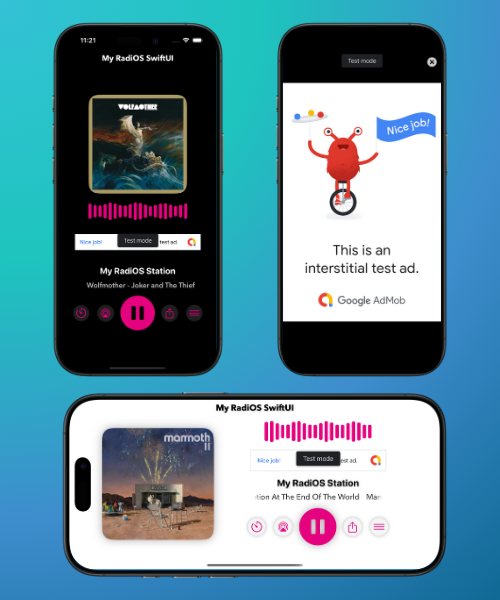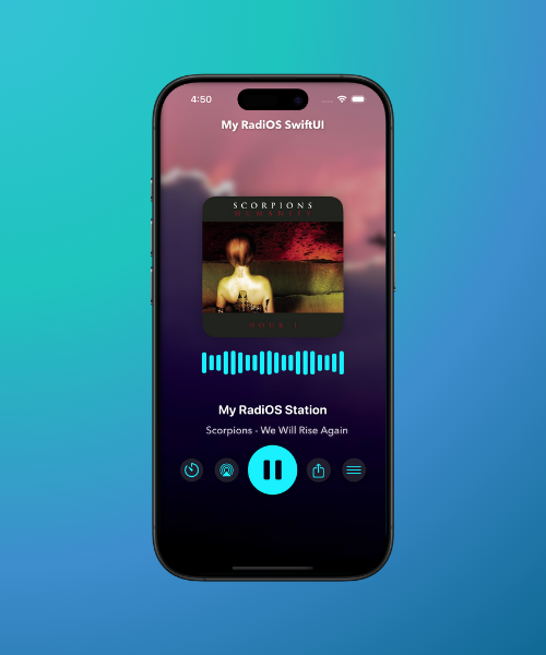 My RadiOS SwiftUI is a sleek and modern radio streaming app that delivers high-quality audio through multiple formats including MP3, AAC, and ALAC. Features seamless live streaming capabilities via HLS and HTTP protocols, with support for MP3 streams and IceCast / Shoutcast server URLs, with an elegant interface that displays real-time track information and artwork.