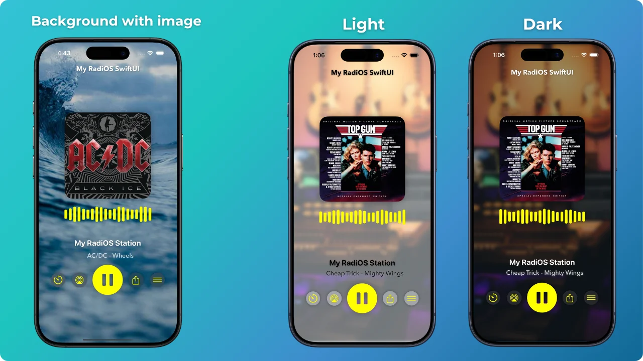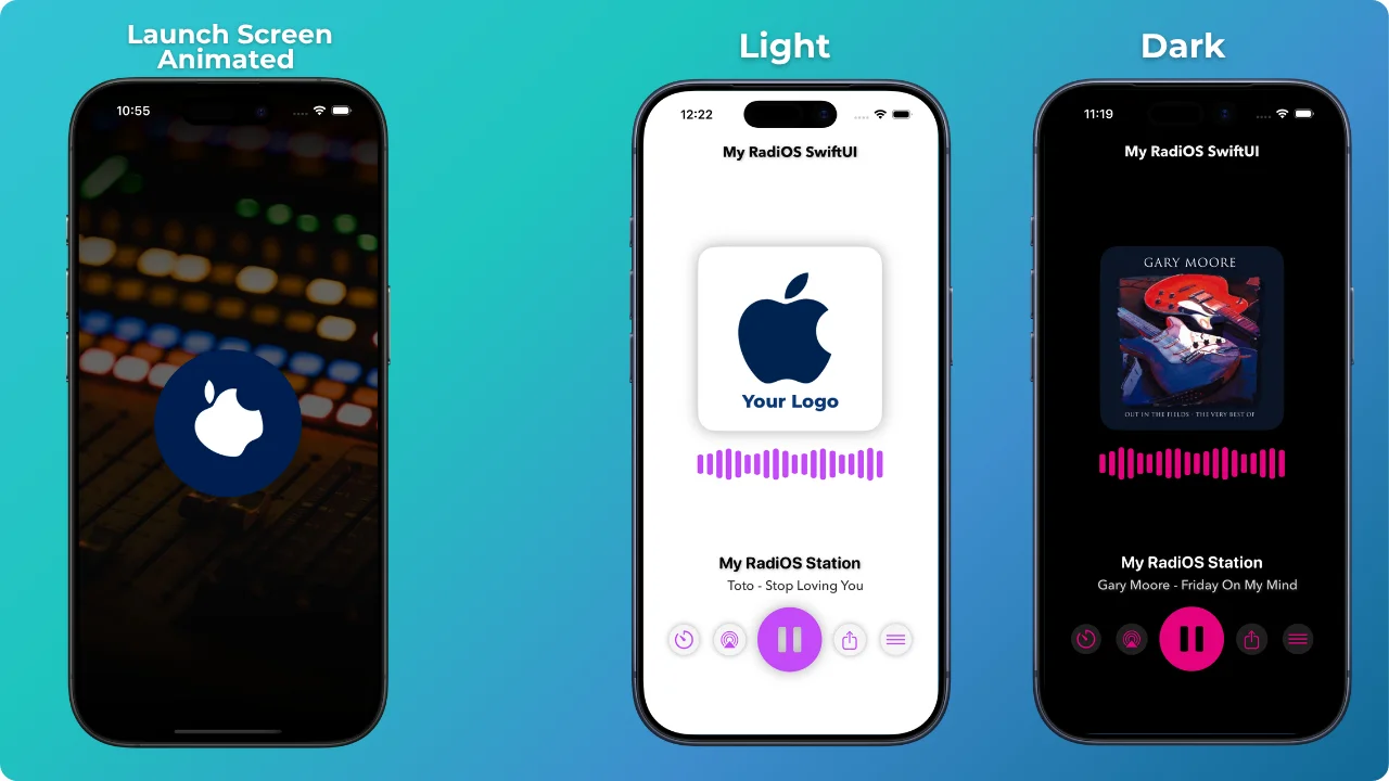 My RadiOS: Premium Radio App for iOS 26, Radio Stream, Radio Swift, iOS APP Template. Launch your Radio App today with the most advanced SwiftUI template.